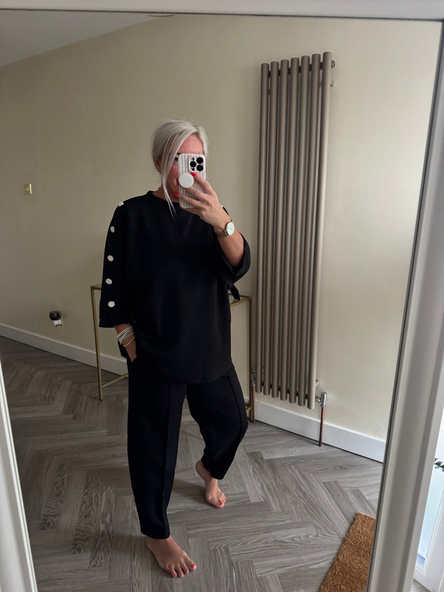 One size fits 8-18 top 8-14/16 trousers elasticated tie waist with pockets tapered leg