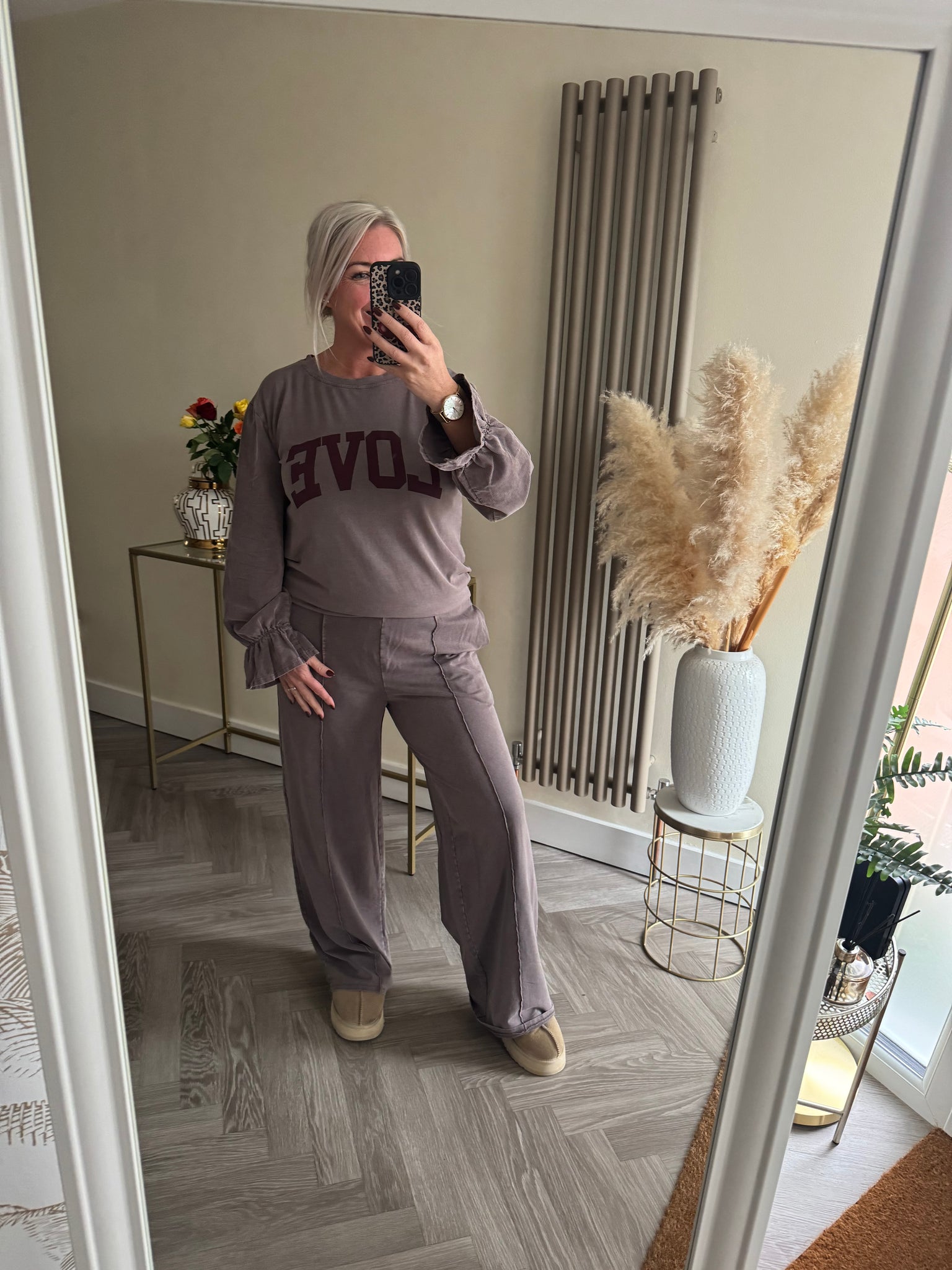 The stonewash Luxe jersey “Love” tracksuit with needle cord sleeve detailing
