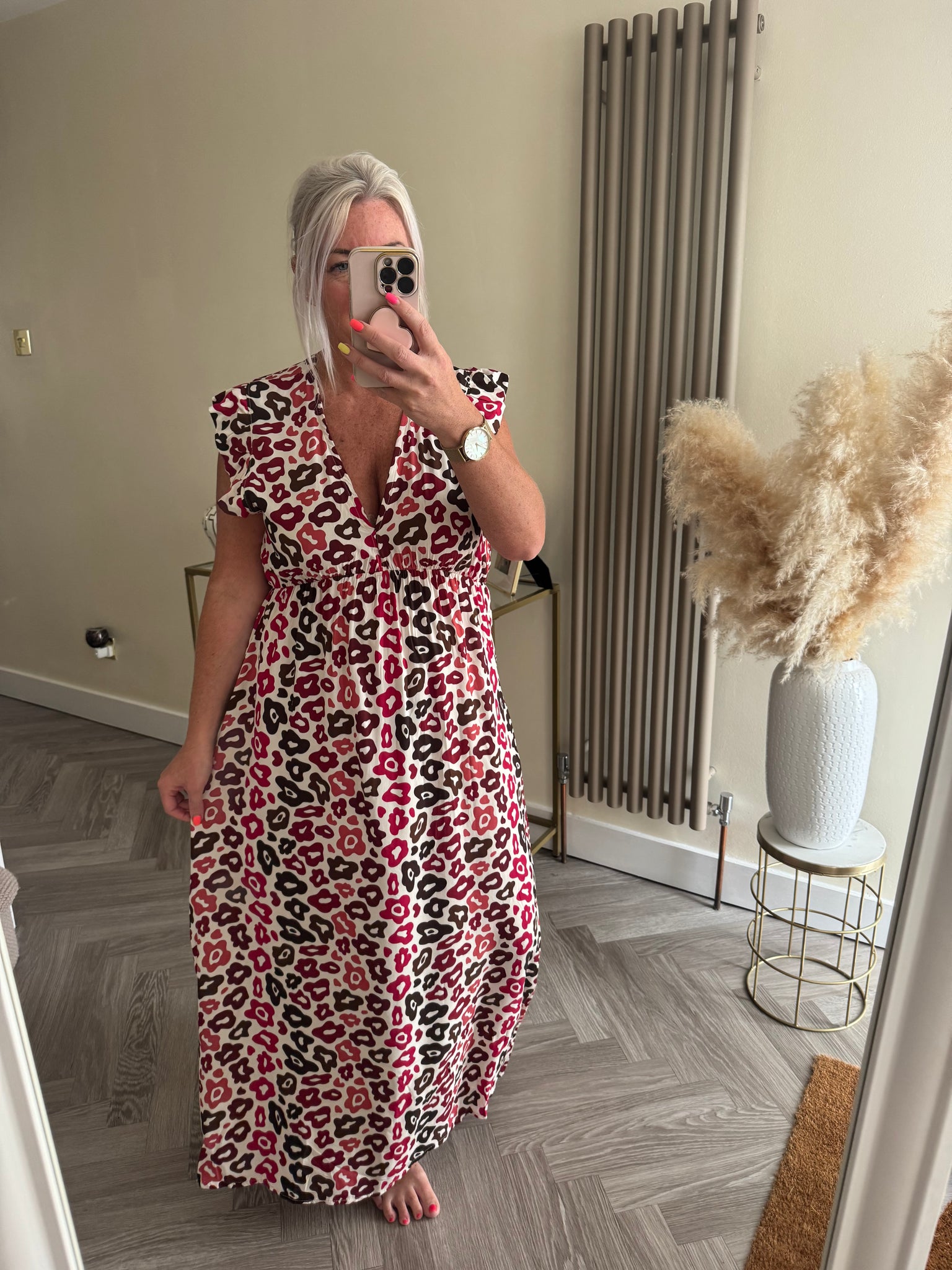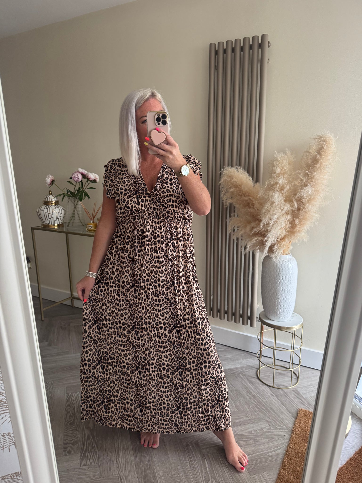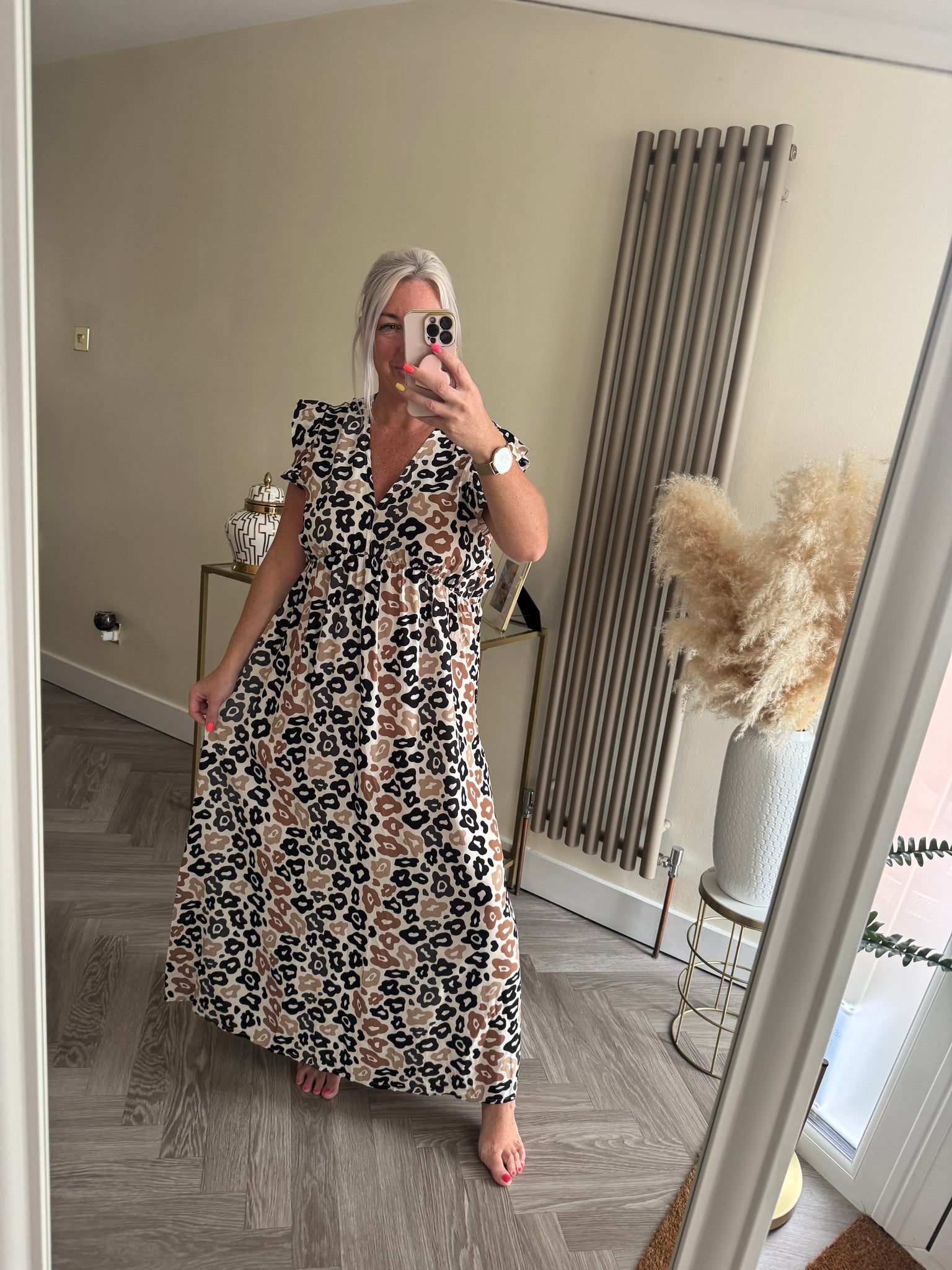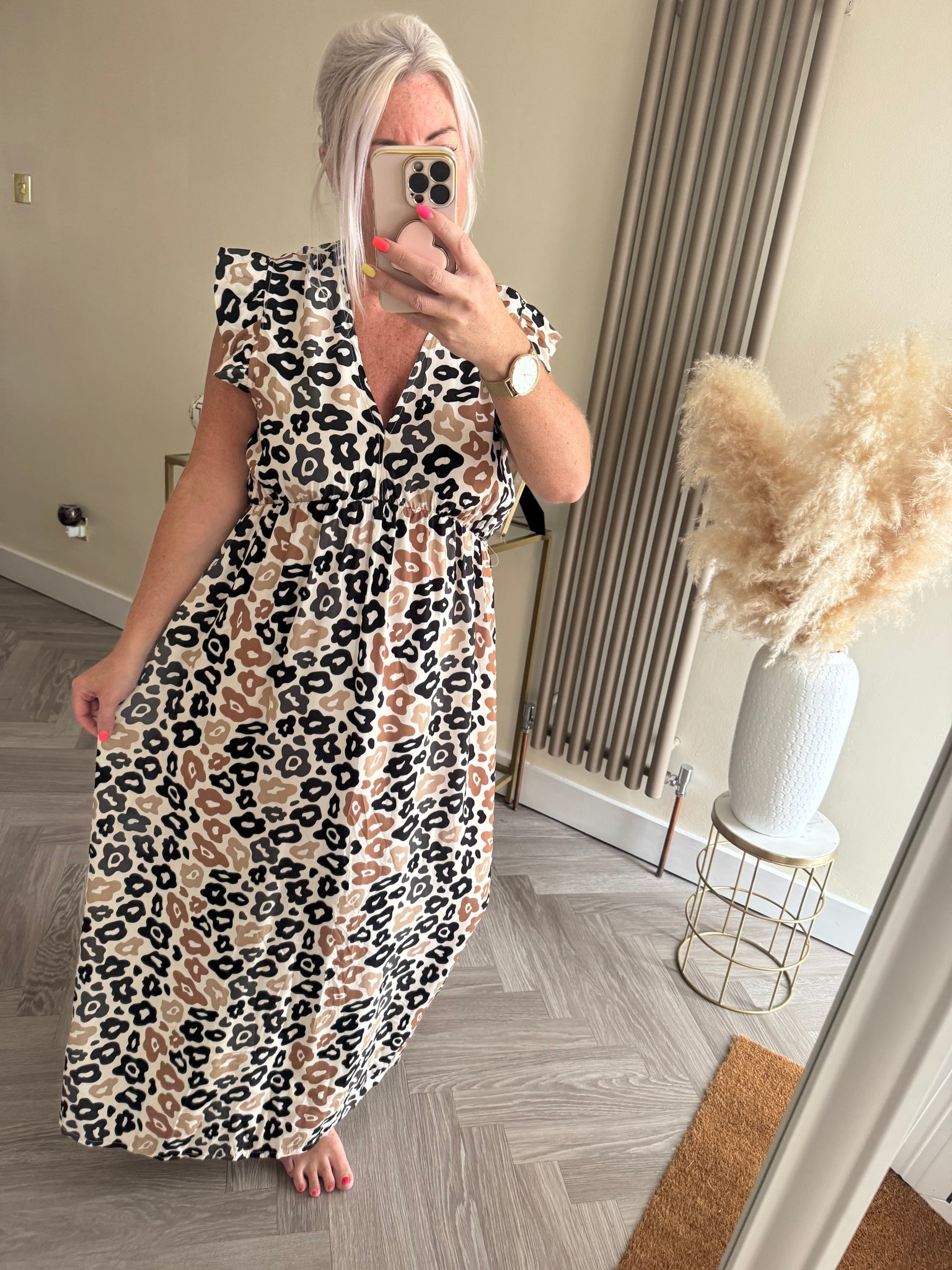 The tie back animal print frill sleeve dress