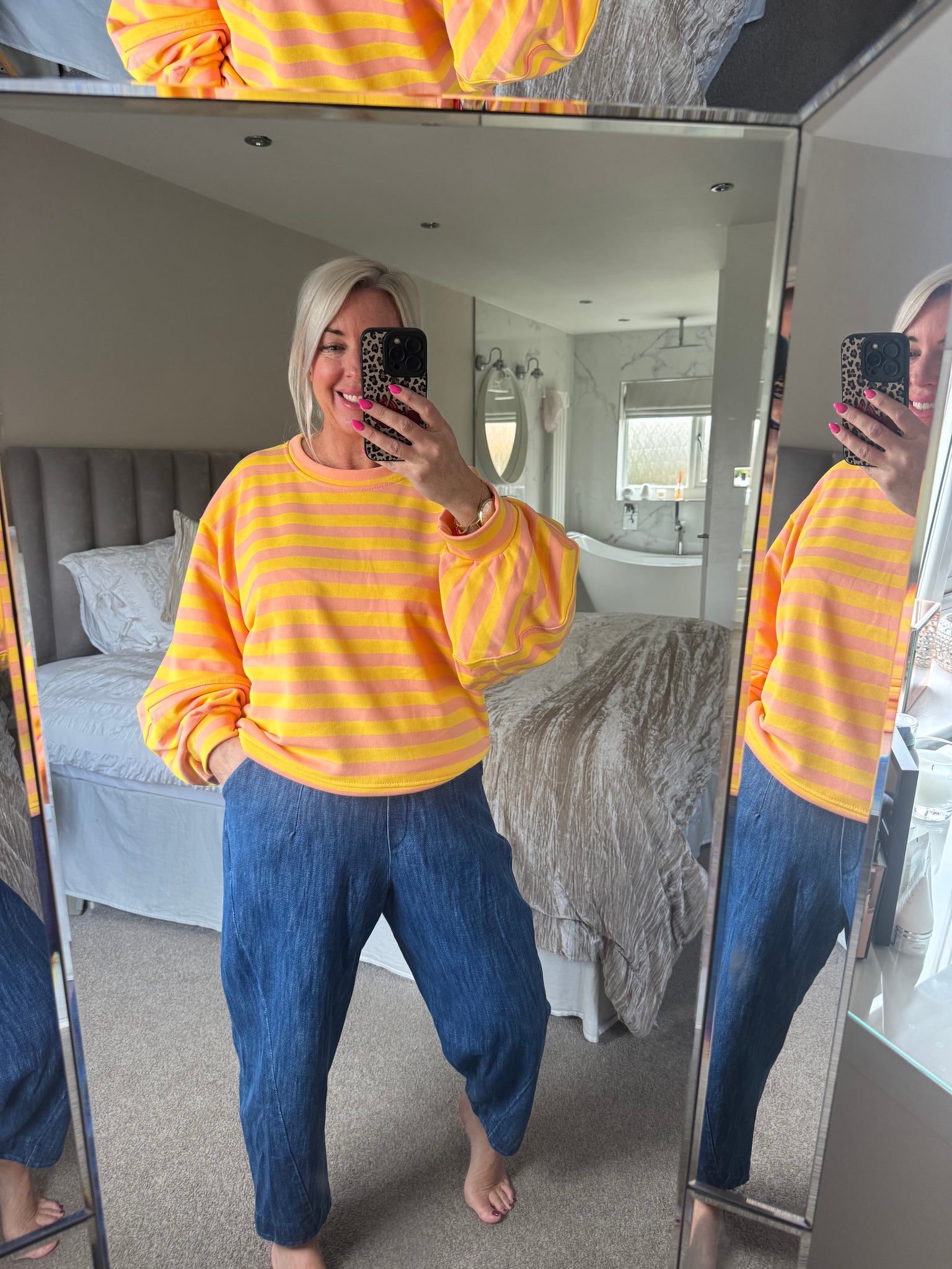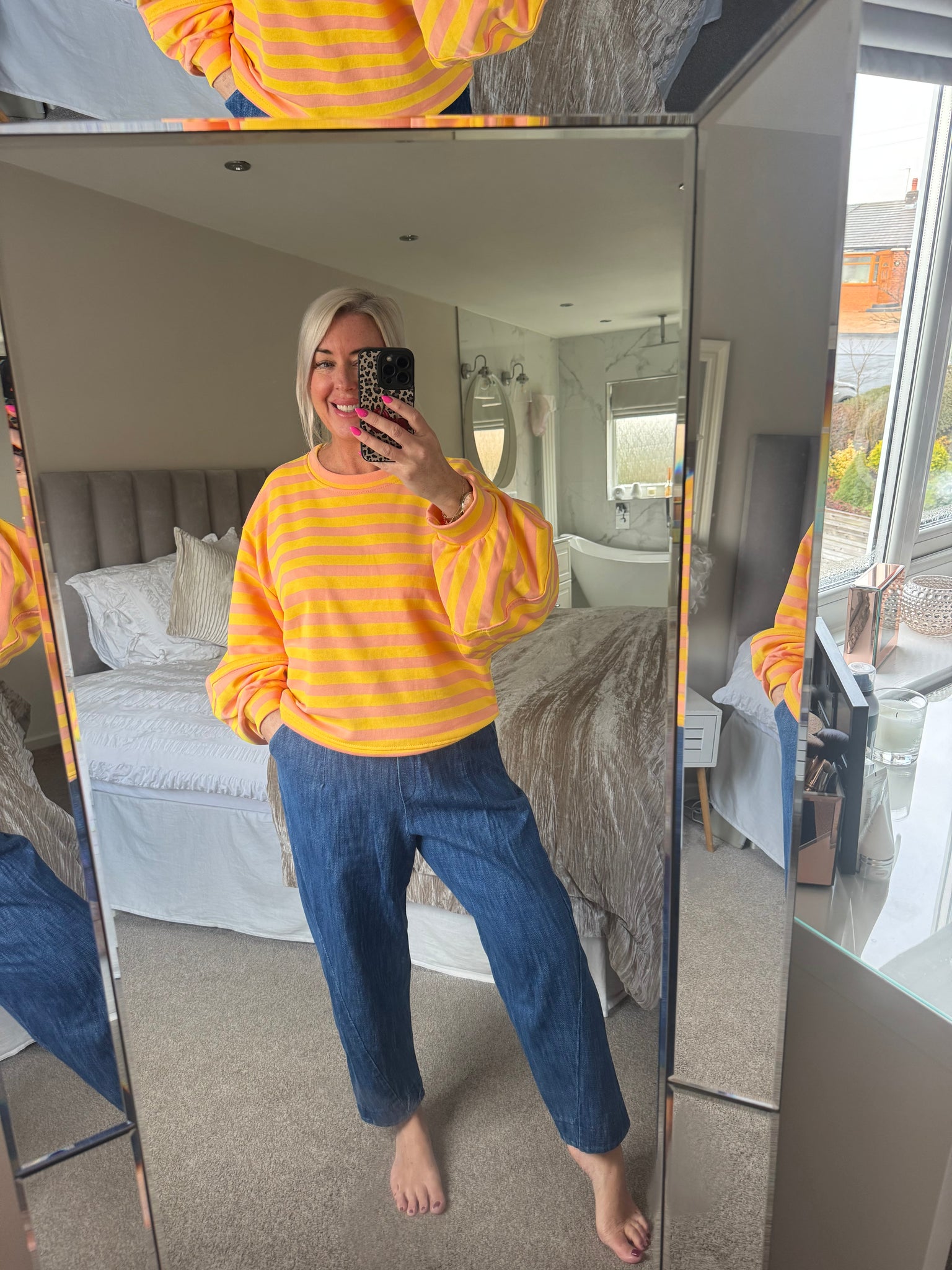 The balloon sleeve striped sweat