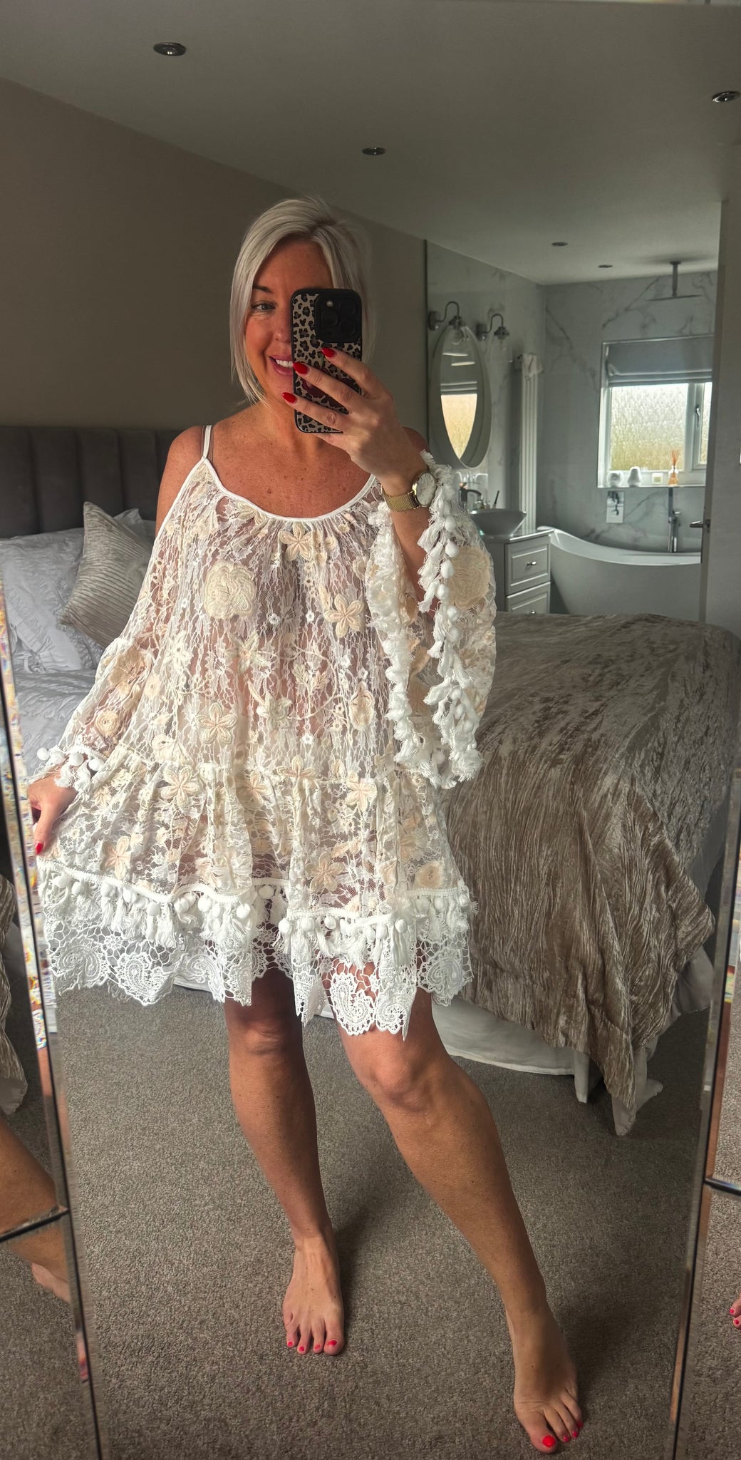 The Bora Bora cold shoulder lace cover up