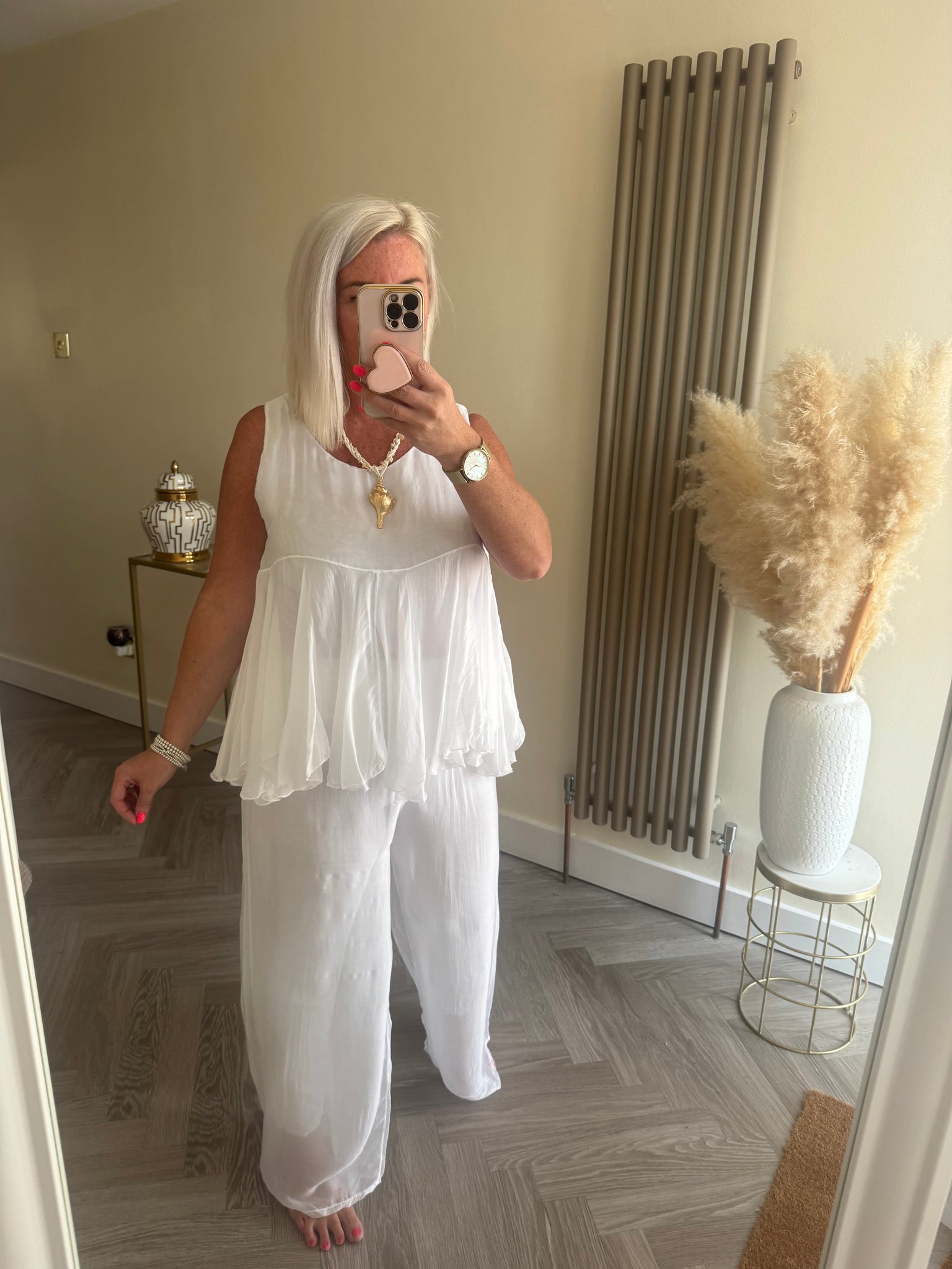 SALE The Bora Bora jersey lined silk frill top (no return on sale items)