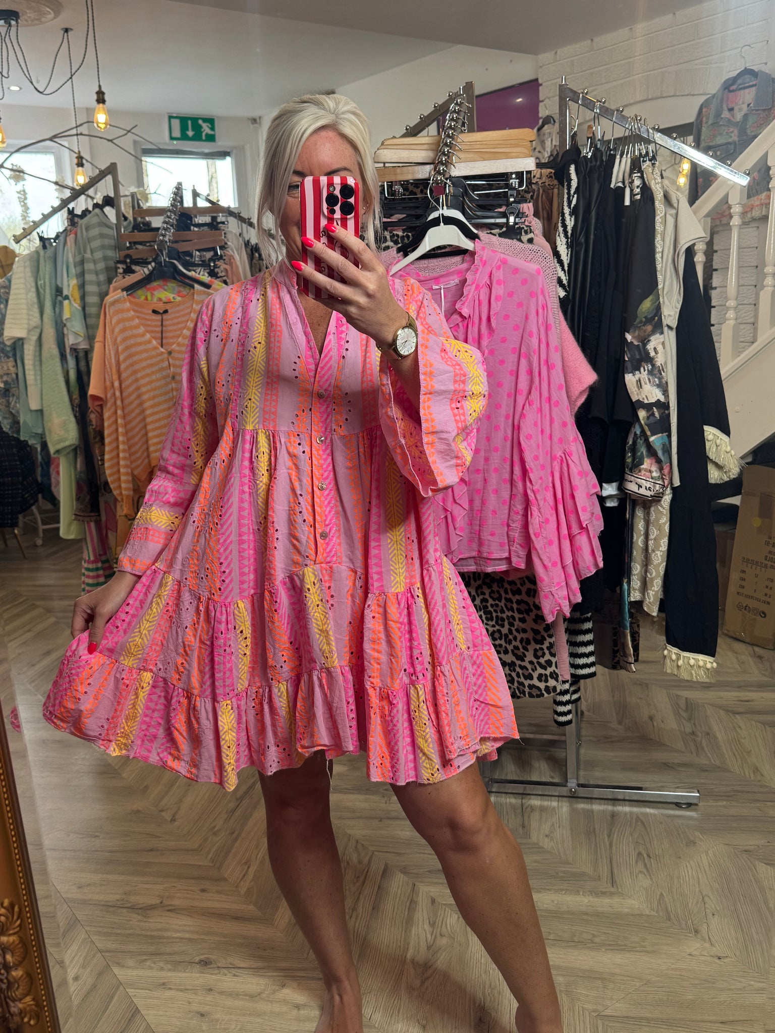 The Bora Bora broaderie anglais cotton neon smock dress