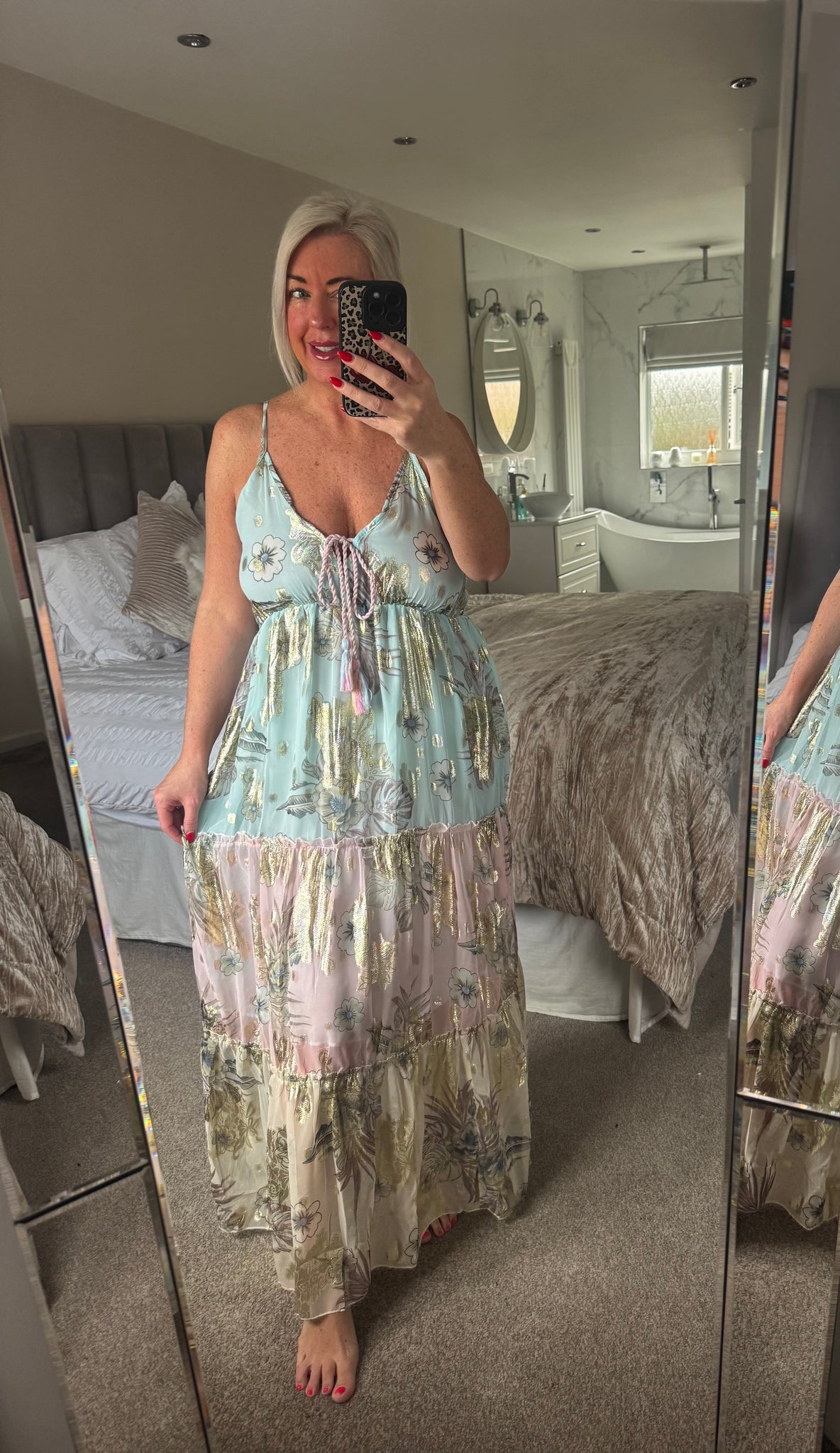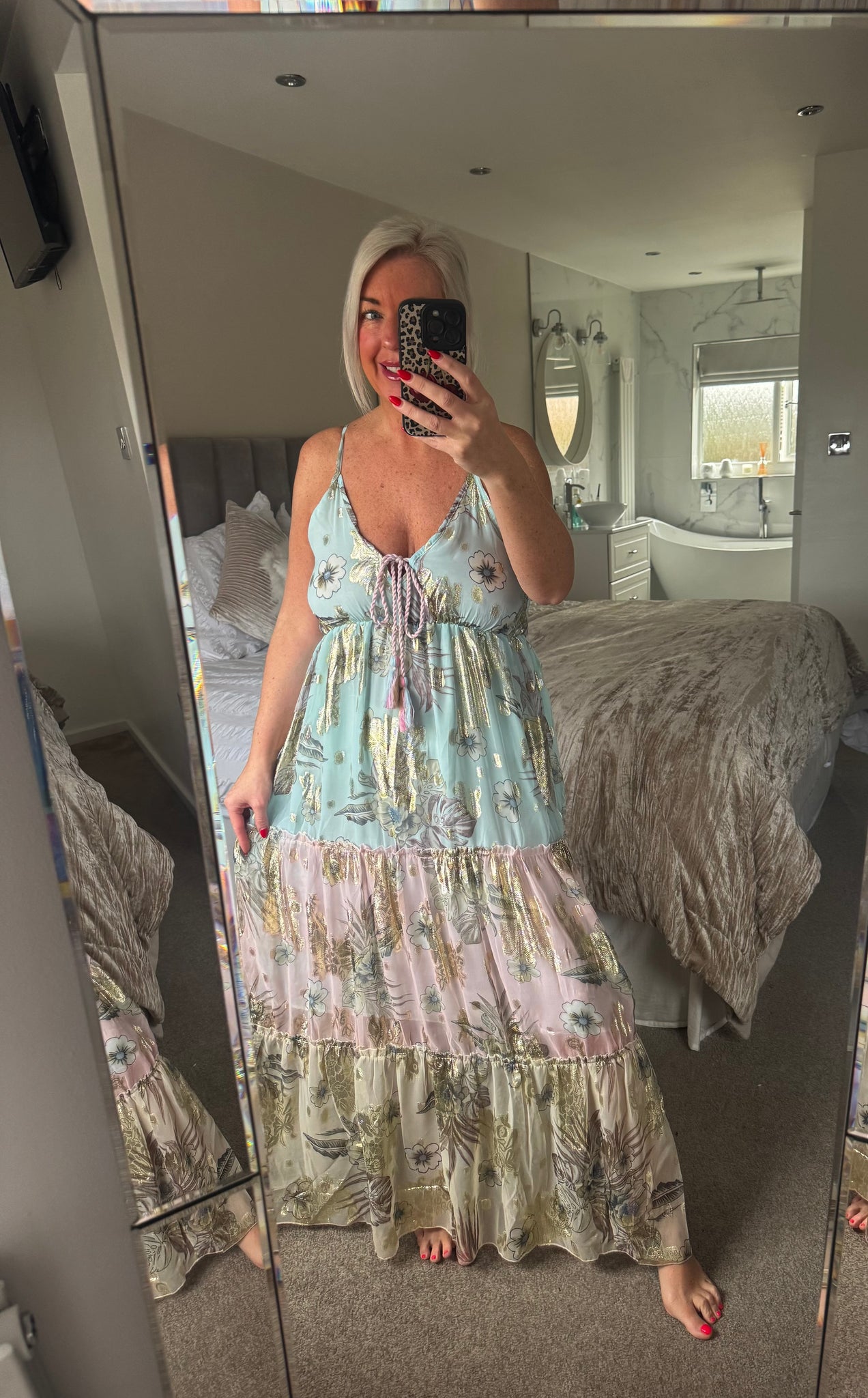 One size fits 8-16/18 (depending on bust size ) length of dress armout to hem 45 inch