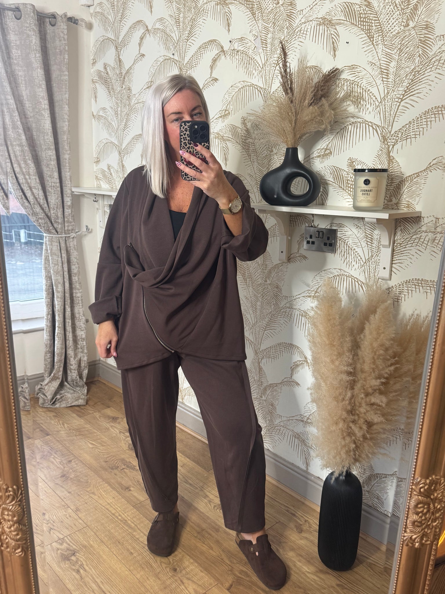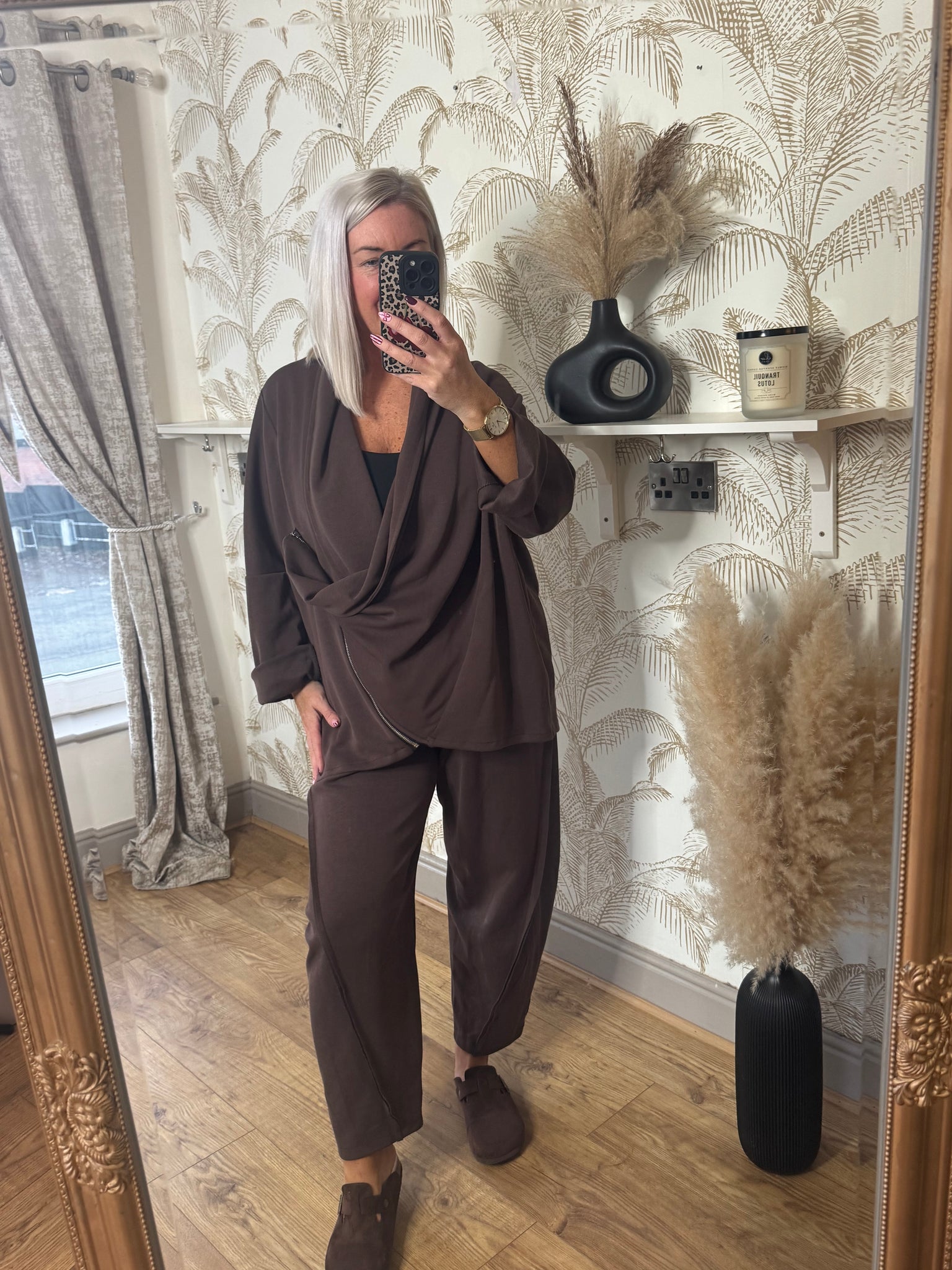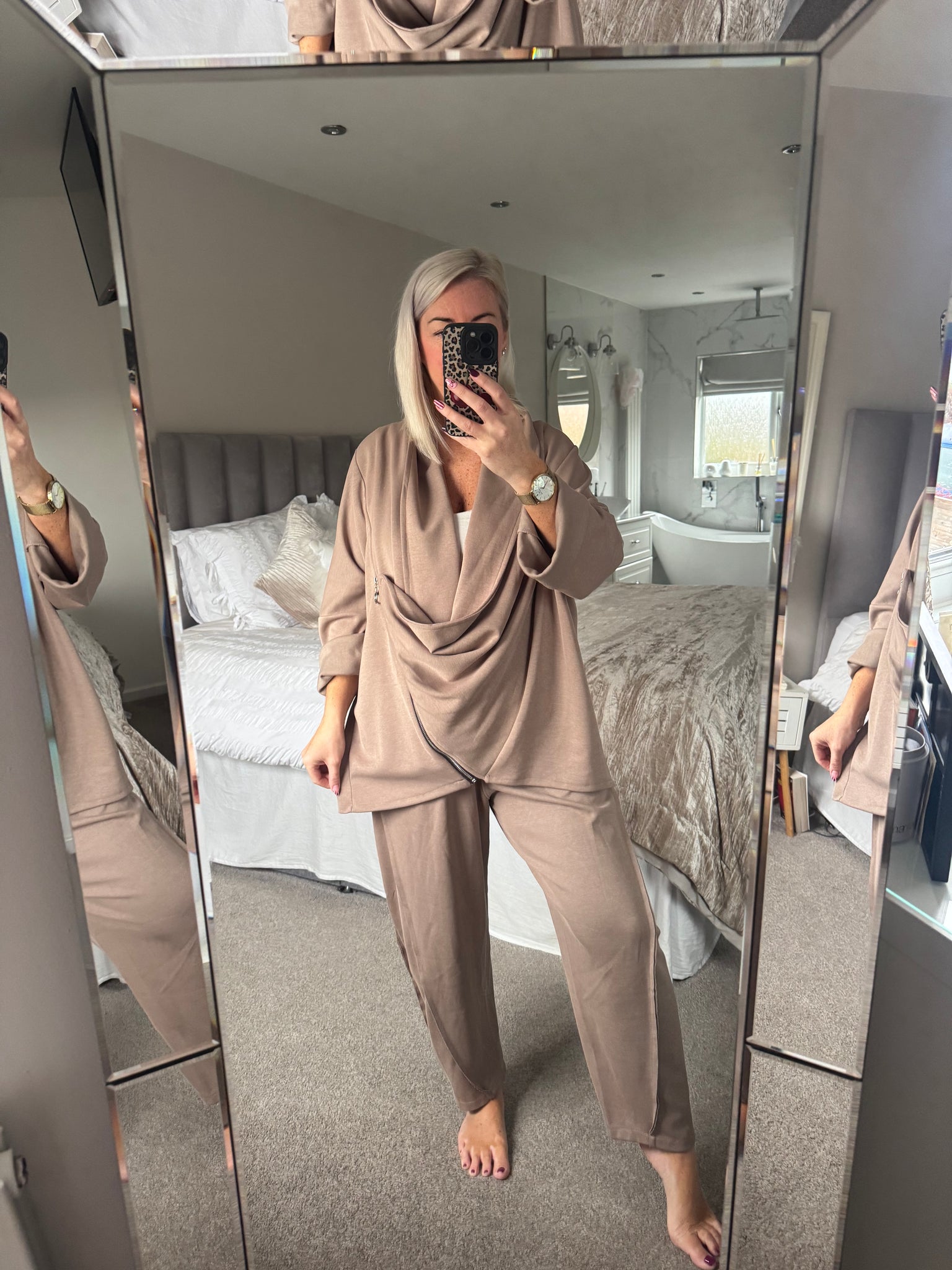 The Gabrielle luxe jersey drape exposed seam tracksuit