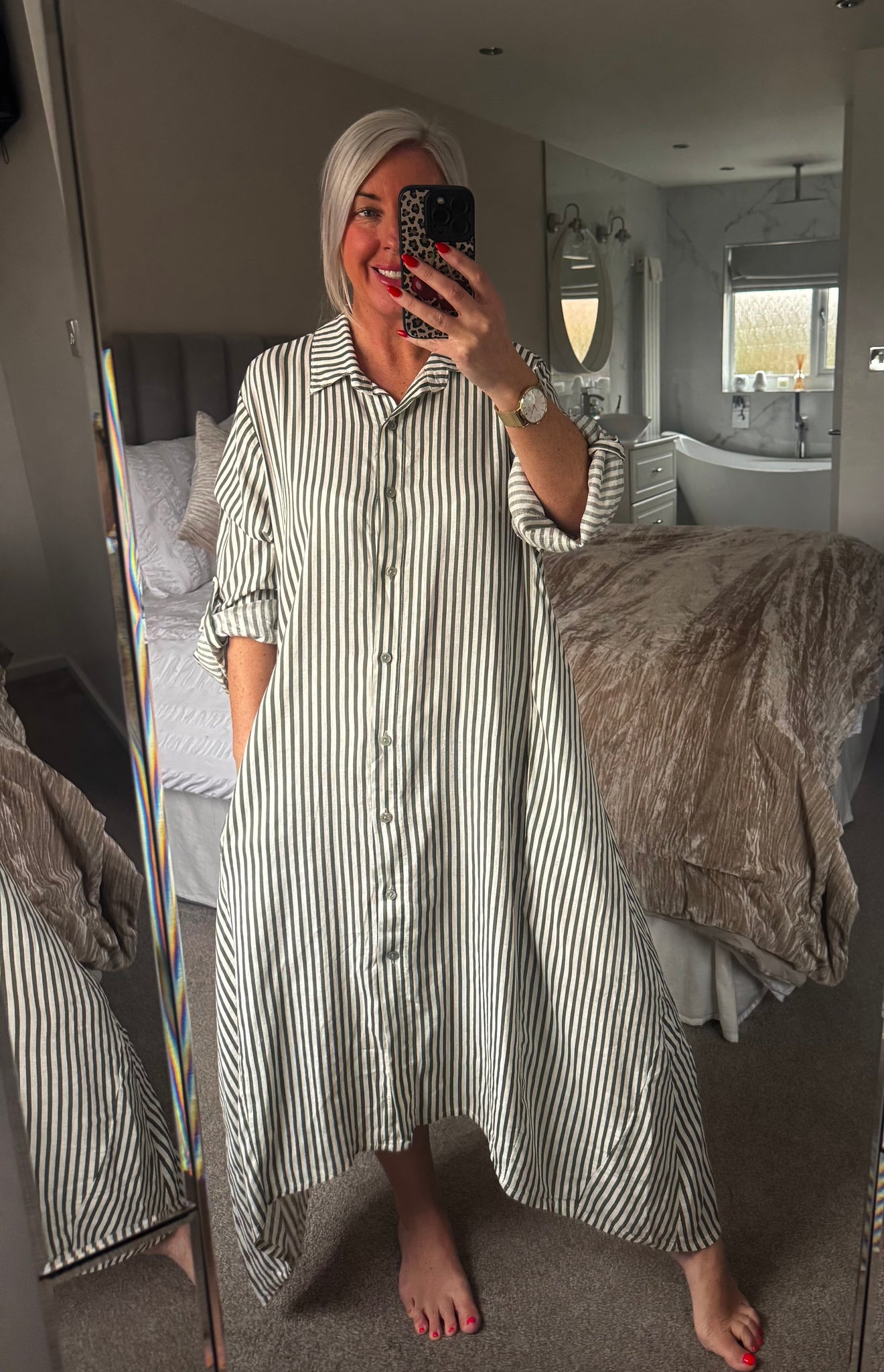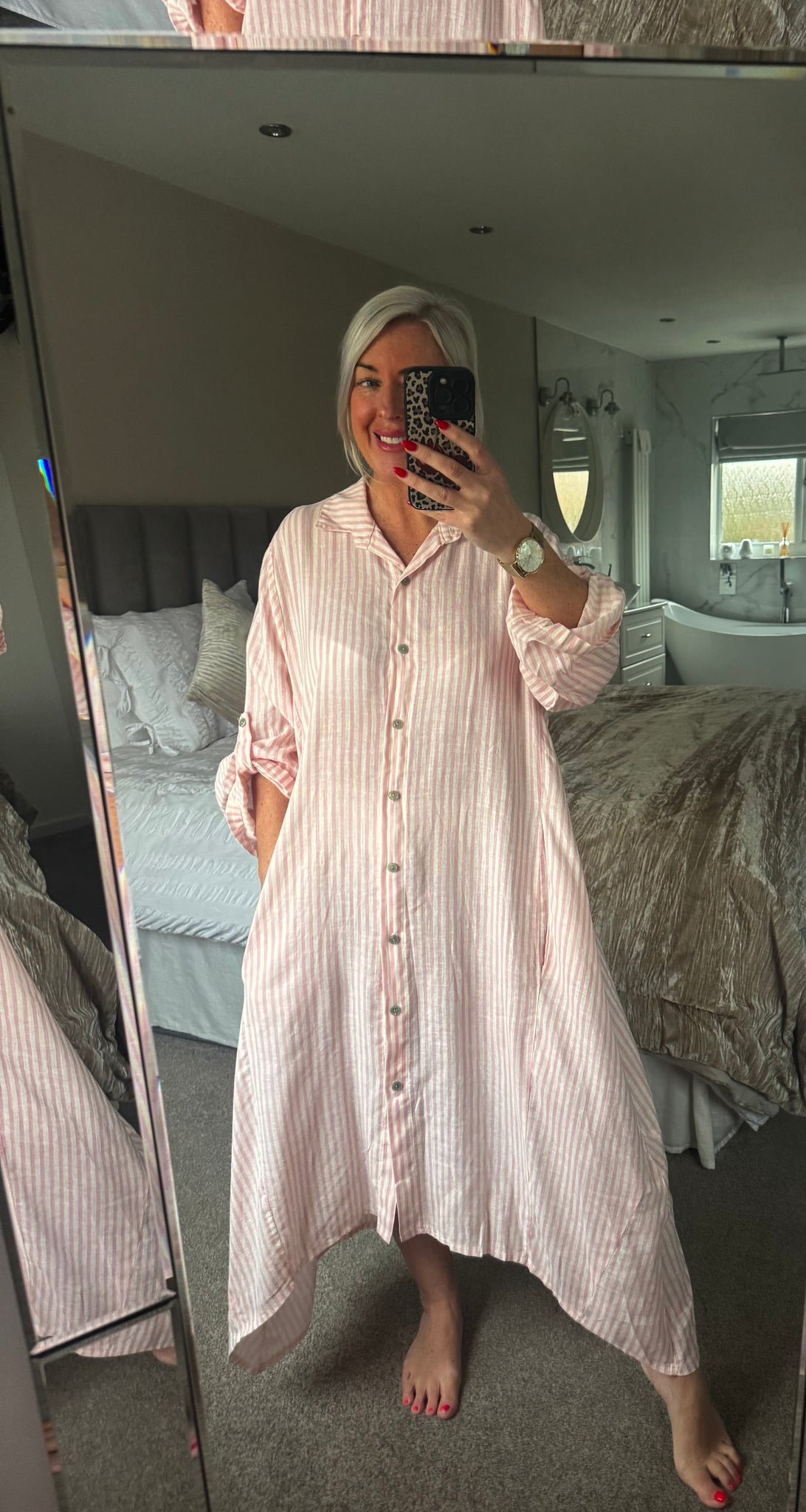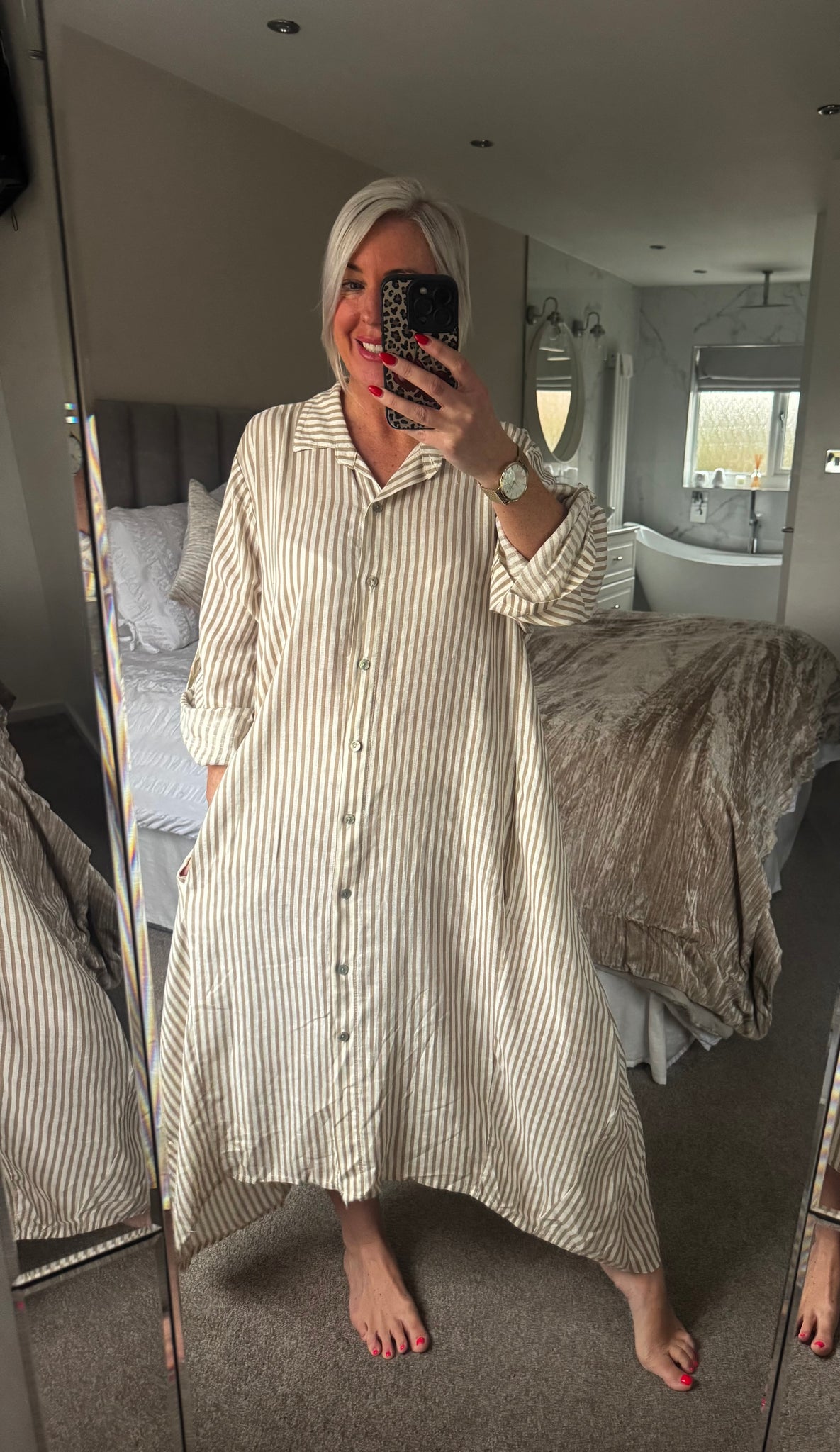 The striped linen shirt dress with pockets