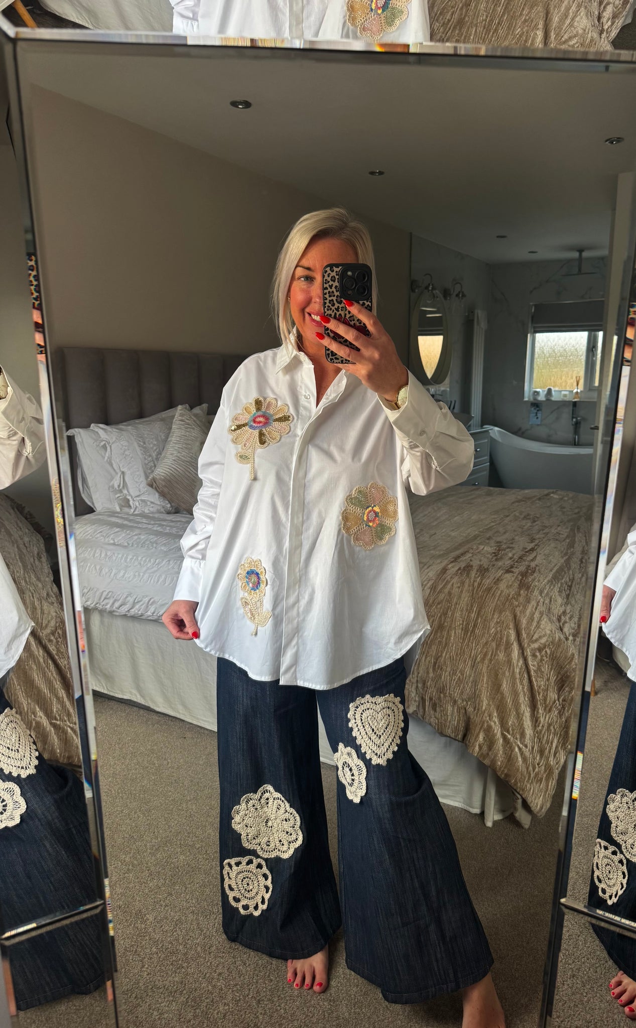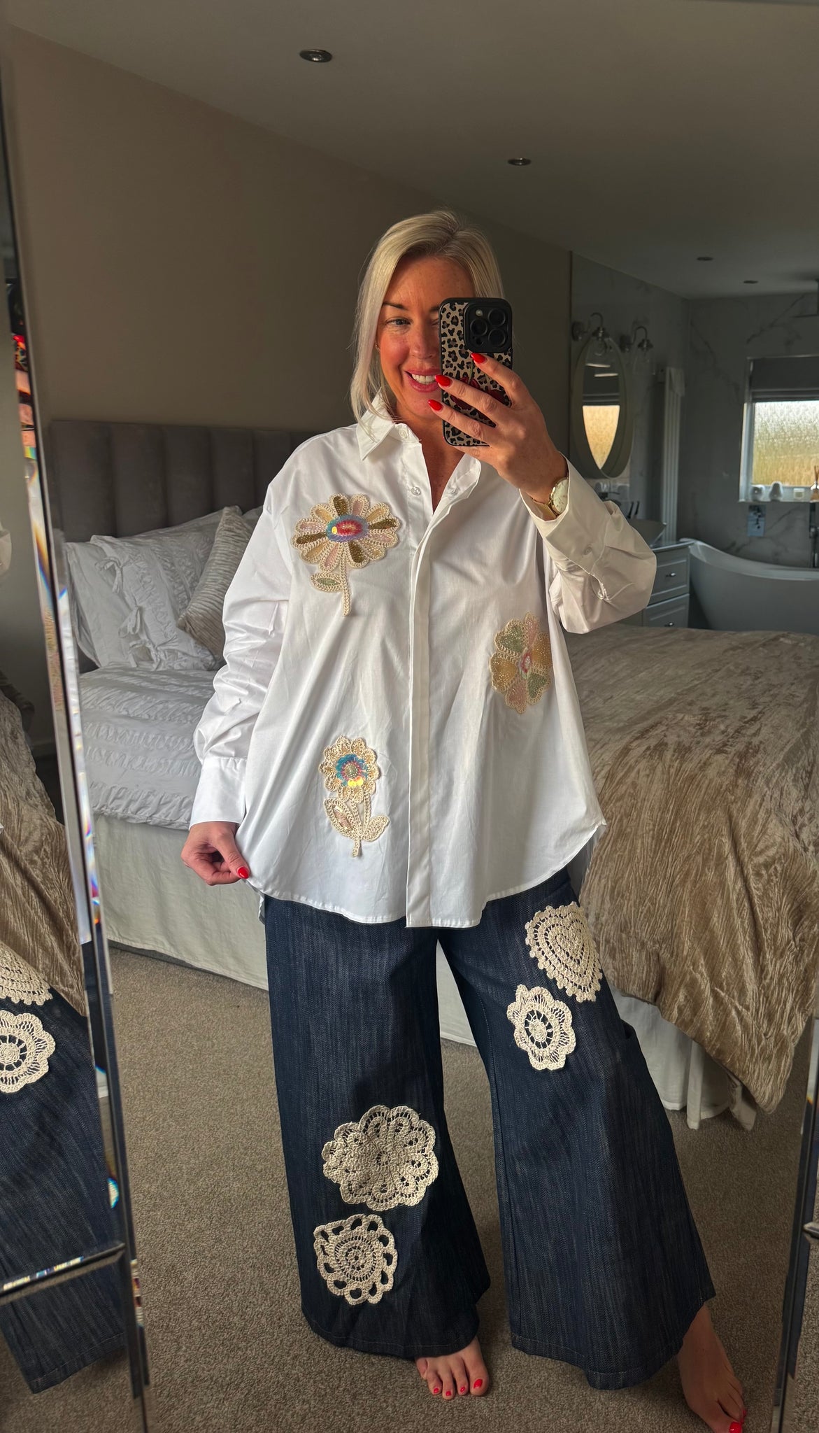 The zeta Otto crochet sparkle flower 100% cotton shirt